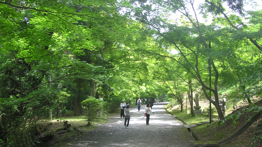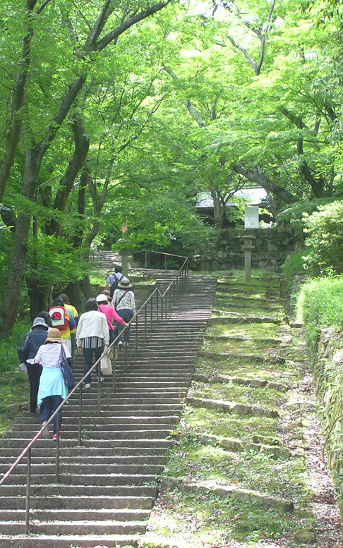 新緑が美しい坂道を登り