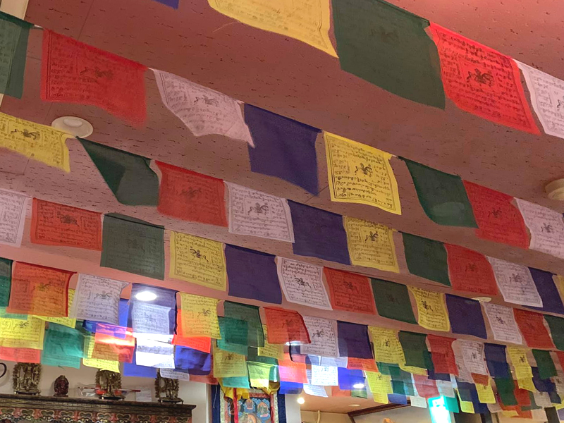 天井には、チベットの祈りの旗 「 タルチョー 」が飾られています