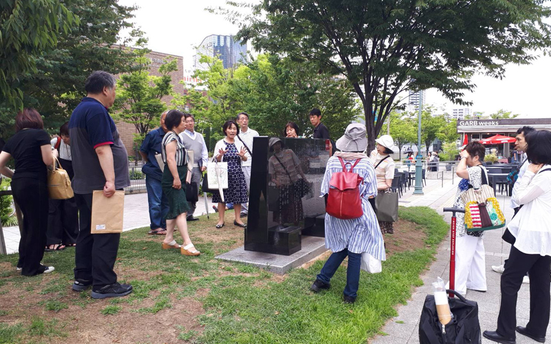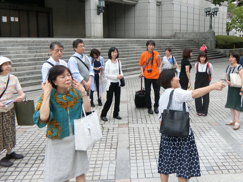 「なにわ」から合流の人が、中之島図書館の前に集まってきました!