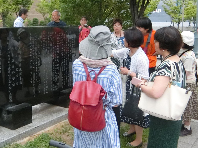 てつ子さんから、合水堂顕彰碑の説明を受ける