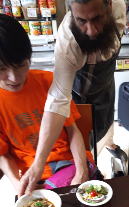 ムスリム(イスラム教徒)のアリさんが、モスクの前でお話をしてくれました