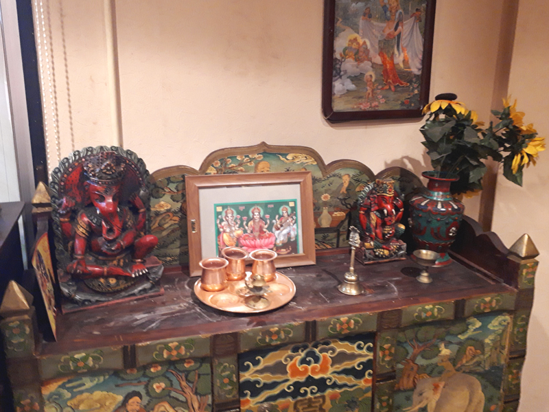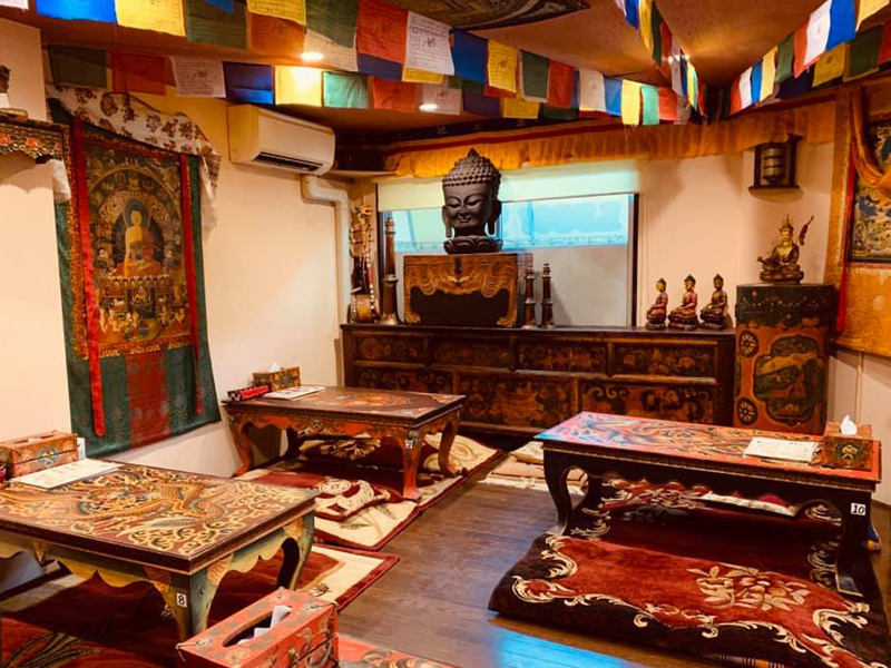 スノーライオンに入ると、チベットの家具や仏像、飾り物などに囲まれ、気分はチベットです