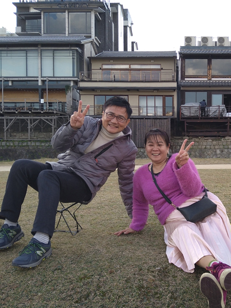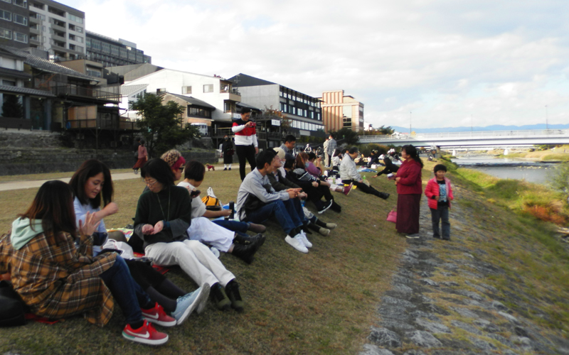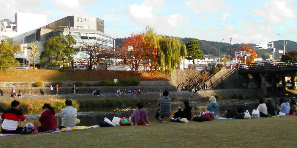 鴨川のカップル 微妙な間隔
