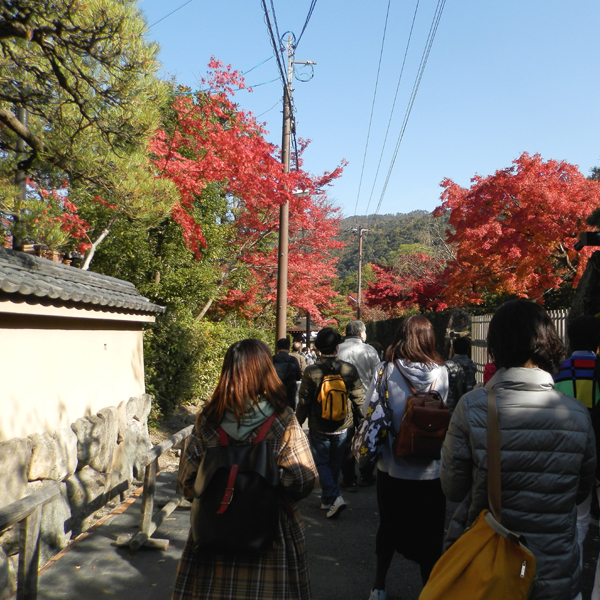 勅使門をくぐると、そこは艶やかな紅葉