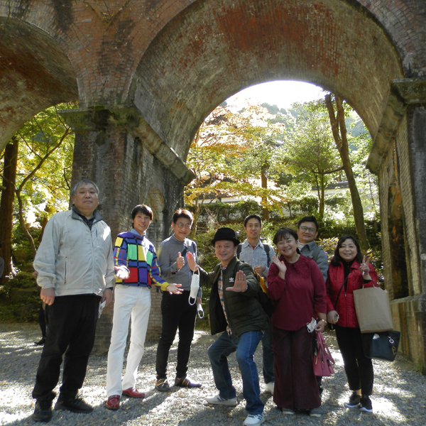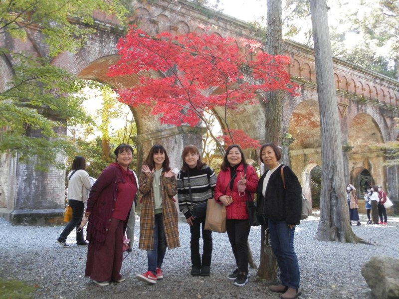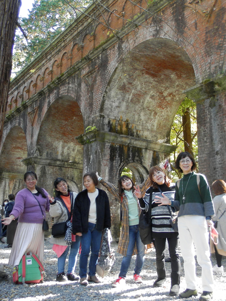 紅葉と水路閣、そして妹子ふぁみりー、とても絵になってます