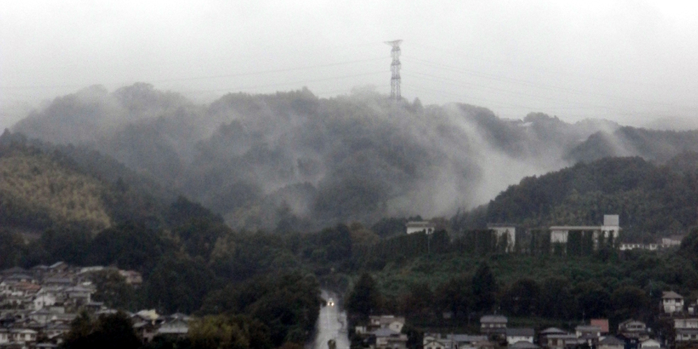雨でみずみずしい境内