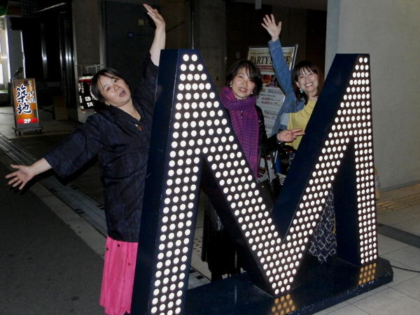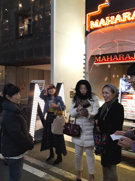 開店の7時ジャスト! ディスコ「 マハラジャ ミナミ 」の前に集まりました